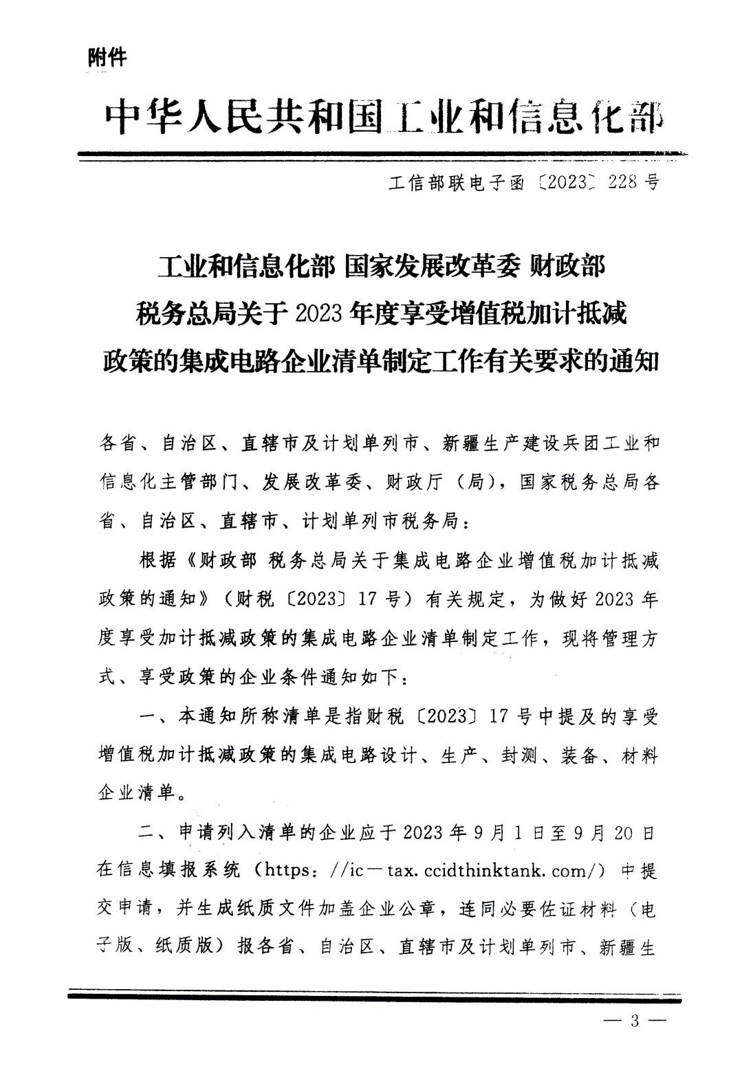 關(guān)于貫徹落實《關(guān)于2023年度享受增值稅加計抵減政策的集成電路企業(yè)清單制定工作有關(guān)要求的通知》的通知